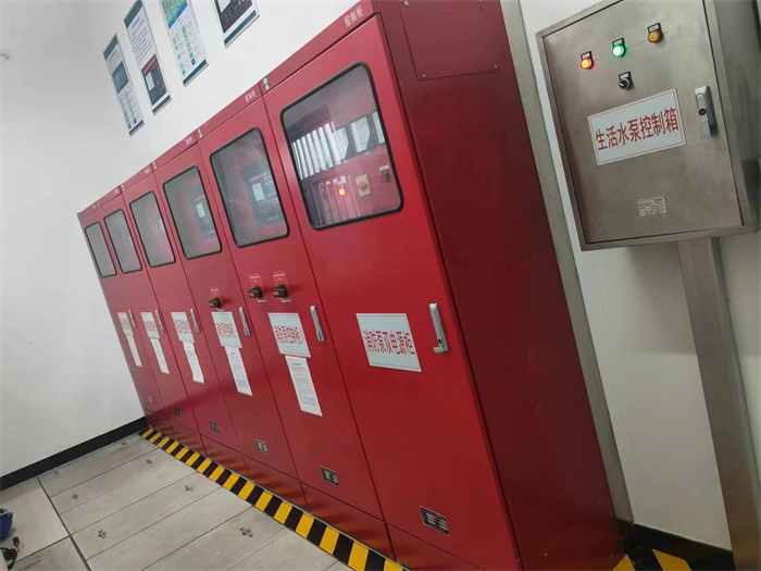 2)消防泵控制柜實現如下功能: 2臺消防泵互為備用;當出水管壓力降低至0.380MPa時,啟動1臺消防泵,同時將消防泵緊急運行信號
