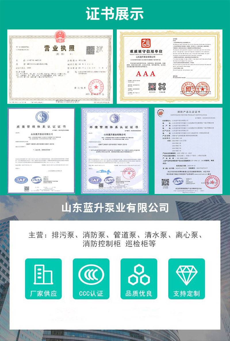 性能參數的差異是兩類泵最直觀的區別。單級消防泵的揚程通常在 12-200 米之間,流量范圍較廣,一般為 5-300L/s。由于只有一次能量轉換,其揚程提升有限,但流量穩定性好,在額定工況下效率可達 80% 以上。多級消防泵的顯著優勢是揚程更高,通過增加葉輪級數可輕松實現 200-2000 米的揚程,特別適合需要高壓力供水的場景。不過多級泵的流量調節范圍相對較窄,且在偏離設計工況時效率下降更為明顯,需要配備更精密的調速裝置。