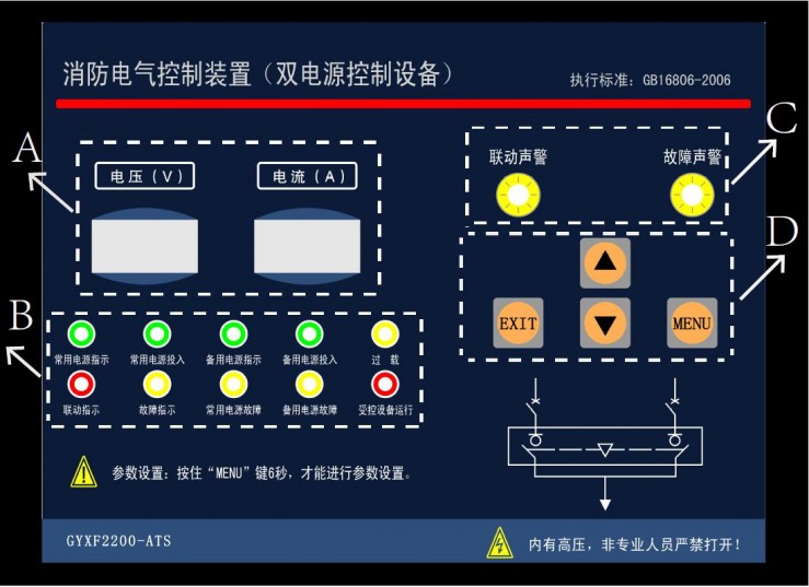 LSK-ATS 型消防電氣控制裝置(雙電源控制柜),是為了滿足消防電氣控制裝置(雙電源控制設(shè)備),符合GB16806-2006標(biāo)準(zhǔn)設(shè)計(jì)的一款產(chǎn)品,用于雙電源控制設(shè)備中的邏輯運(yùn)算、自動(dòng)遠(yuǎn)程信號(hào)處理、繼電器驅(qū)動(dòng)、電壓電流顯示及負(fù)載故障保護(hù)。