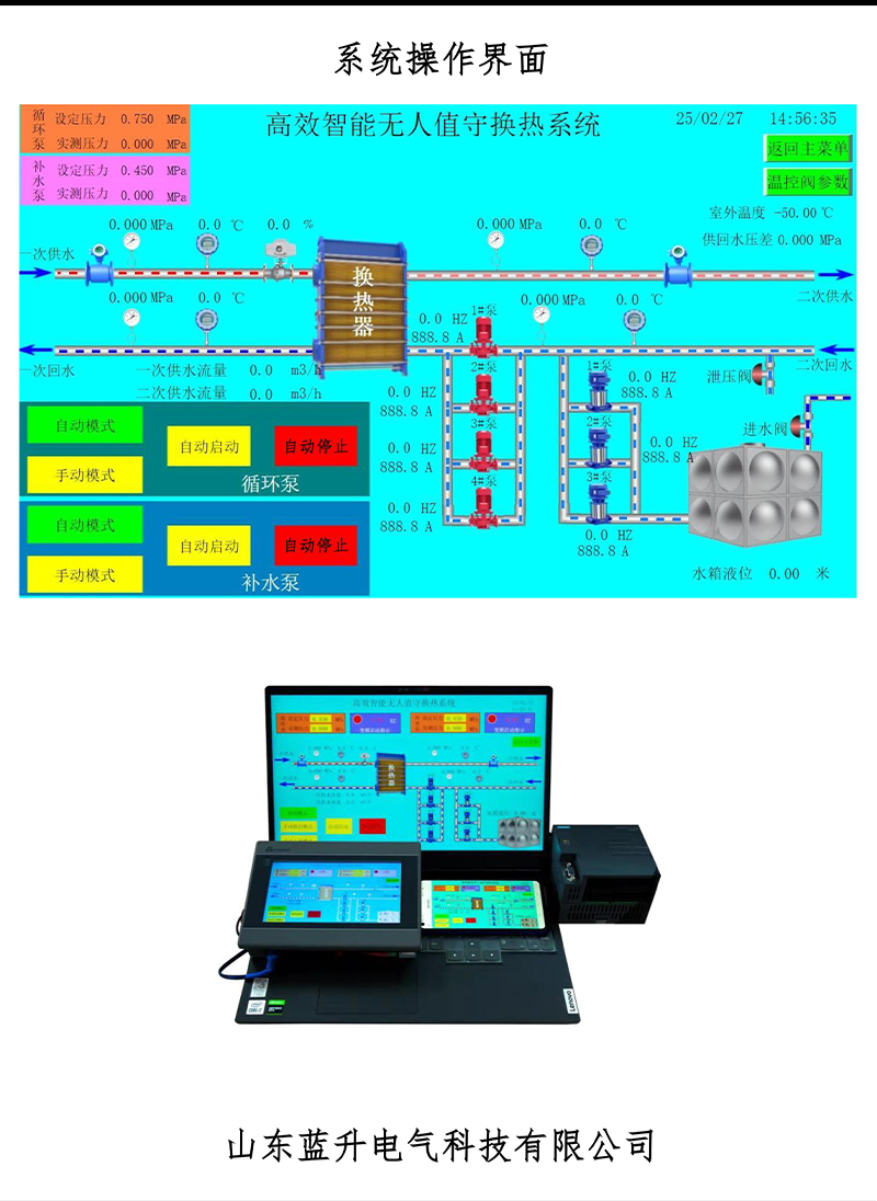 裝調試 人員,電話溝通即可處理一般故障,節省時間,操作輕松。同時,換熱控制系統可在 顯示屏上明確顯示其 水流、工頻、變頻、轉換工況。