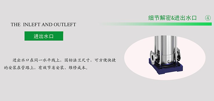 2、泵口徑相同且在同一水平中心線上,無需改變管路結構,可直接安裝在管道的任何部們,安裝極為方便。